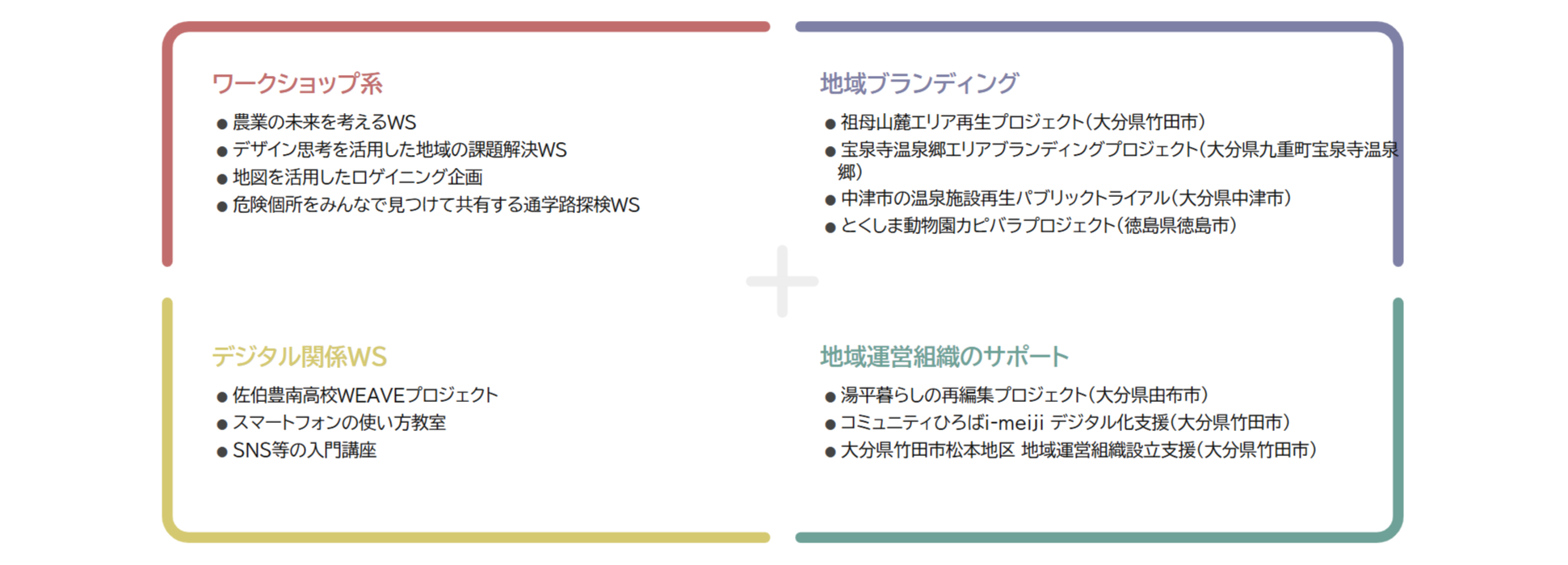 地域がまとまるうえで必要となるコンセプトづくりなど、グループワークの会議運営サポートを行っています。