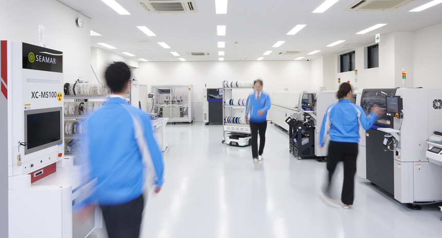 テクニカルセンターでは最新の電子部品実装(SMT)設備とロボット(FA)システム、生産管理システムソフトウェアを揃えています。