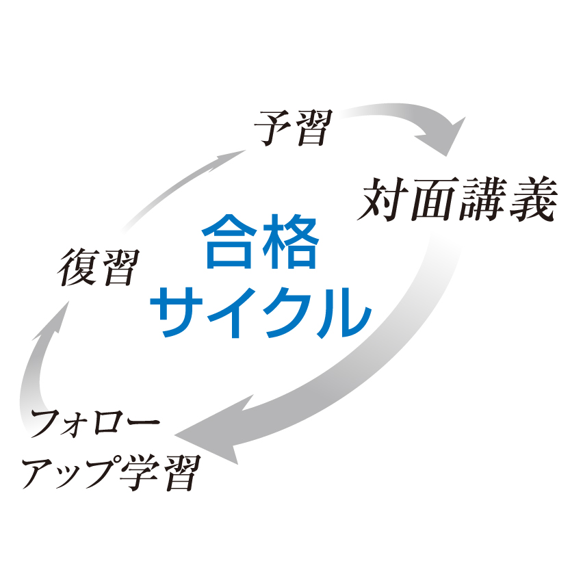 当学院では予習・講習・復習を試験日まで効率的・継続的に行える「合格サイクル+継続学習」を導入しています。