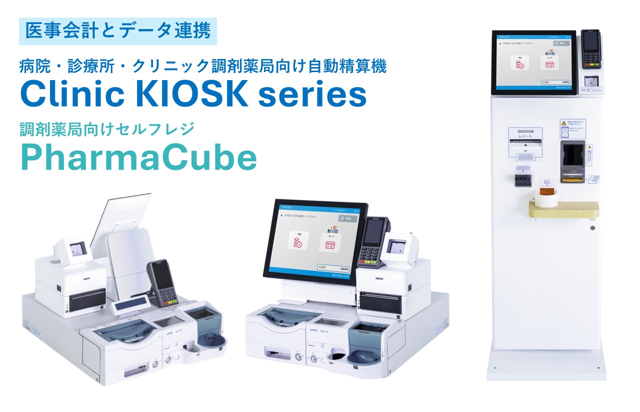 『Clinic KIOSK』は医療機関向け、『Pharma Cube』は調剤薬局向けのセルフ自動精算システムです。